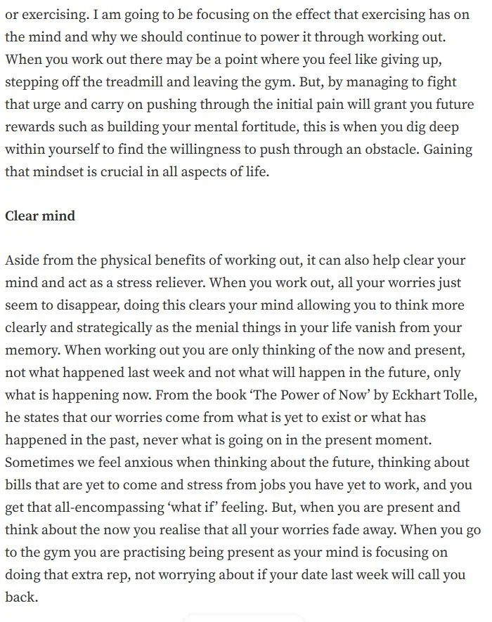 I was tasked with creating a fitness blog post that showcases the benefits of working out and why this should be considered part of an everyday routine.